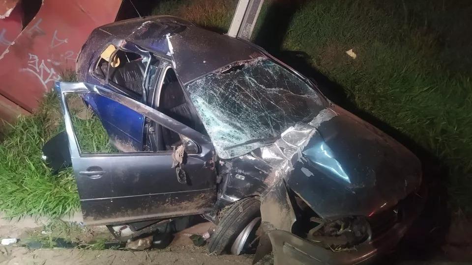 De acordo com a PRF, um Golf, com placas de Porto União/SC, invadiu a faixa contrária e bateu contra a estrutura de concreto de um ponto de ônibus.