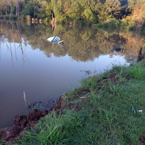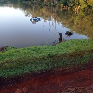 O veículo caiu dentro de um açude na estrada municipal sentido ao município de Assis Chateaubriand.