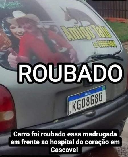 Ontem (13), ele teve seu veículo Corsa, cor cinza, placas KGD8G80, padrão Mercosul, furtado de um estacionamento nas imediações do hospital.