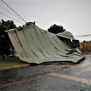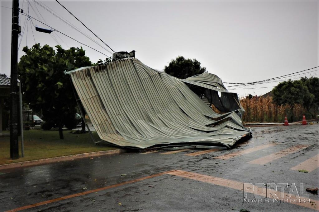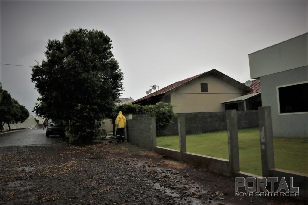 Informações repassadas a reportagem do Portal Nova Santa Rosa relatam que no momento da chuva na tarde desta quarta-feira (18), uma forte rajada de vento arrancou o telhado de zinco da casa situada na esquina, o telhado foi passando de casa em casa até parar cerca de cem metros da residência em cima dos fios de alta tensão de energia.