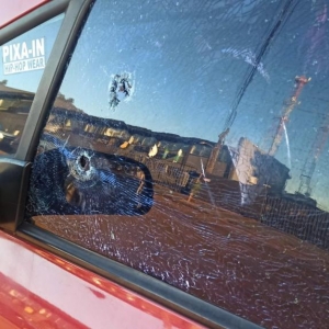 As marcas dos Tiros ficaram na janela do Peugeot, segundo a Polícia Civil, a vítima já tinha várias passagens por tráfico de drogas pela carceragem da delegacia.