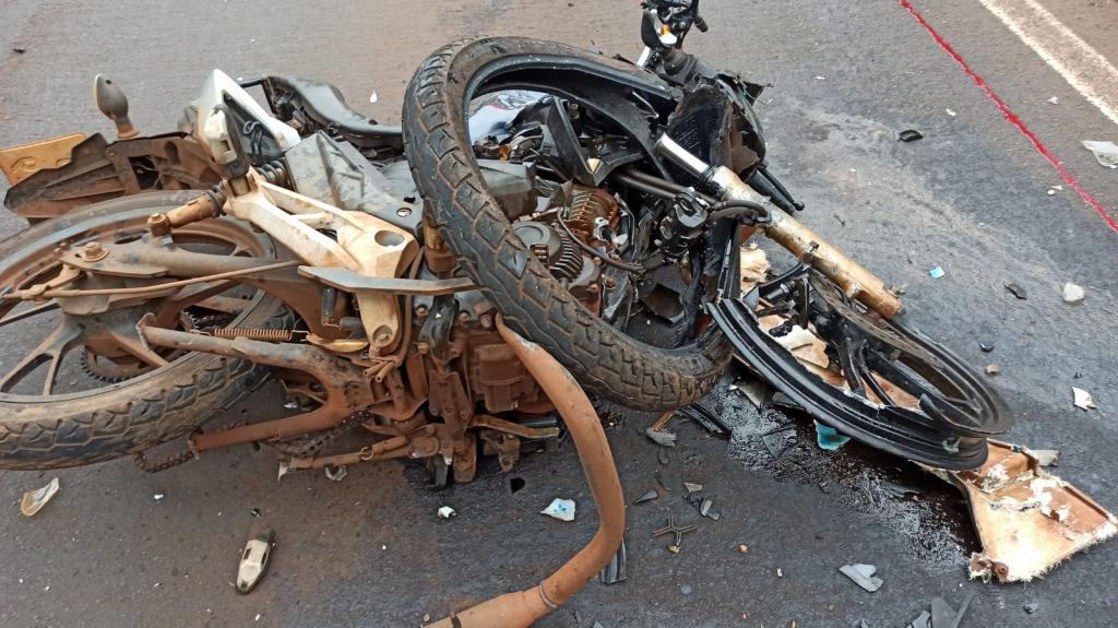 O rapaz conduzia uma moto Honda CG Titan de 150 cilindrada placa Mercosul quando colidiu violentamente de frente com o caminhão de transporte de ração com placas também do Mercosul.