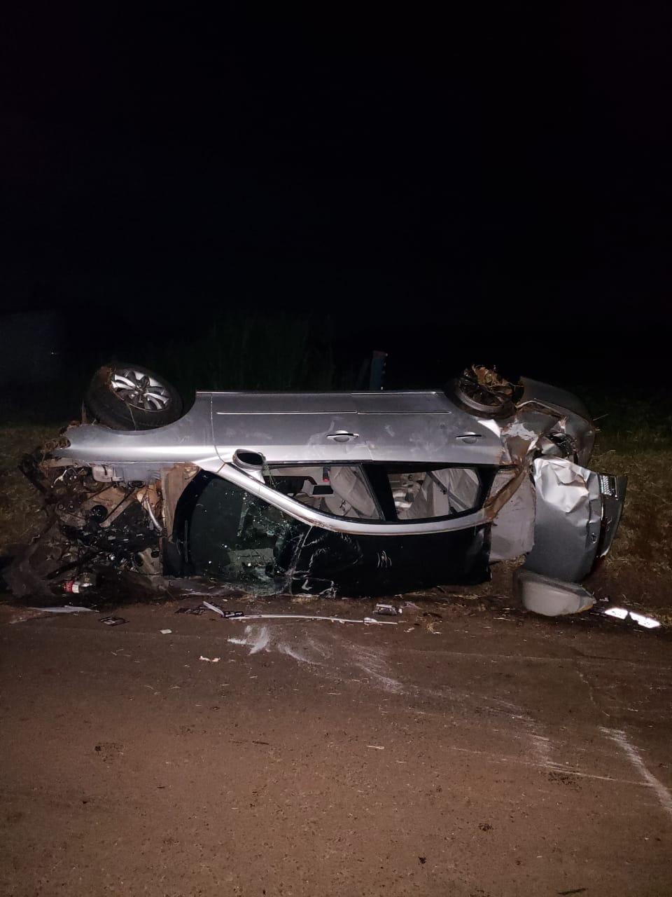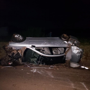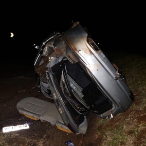 O Hyundai/Azera, de Guaira, conduzido por um rapaz de 27 anos tendo como passageiro um jovem de 24 anos capotou na noite desta segunda-feira após colidir contra uma árvore na rodovia PR-496 em terra Roxa.