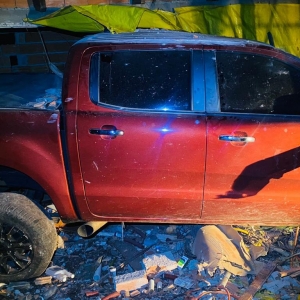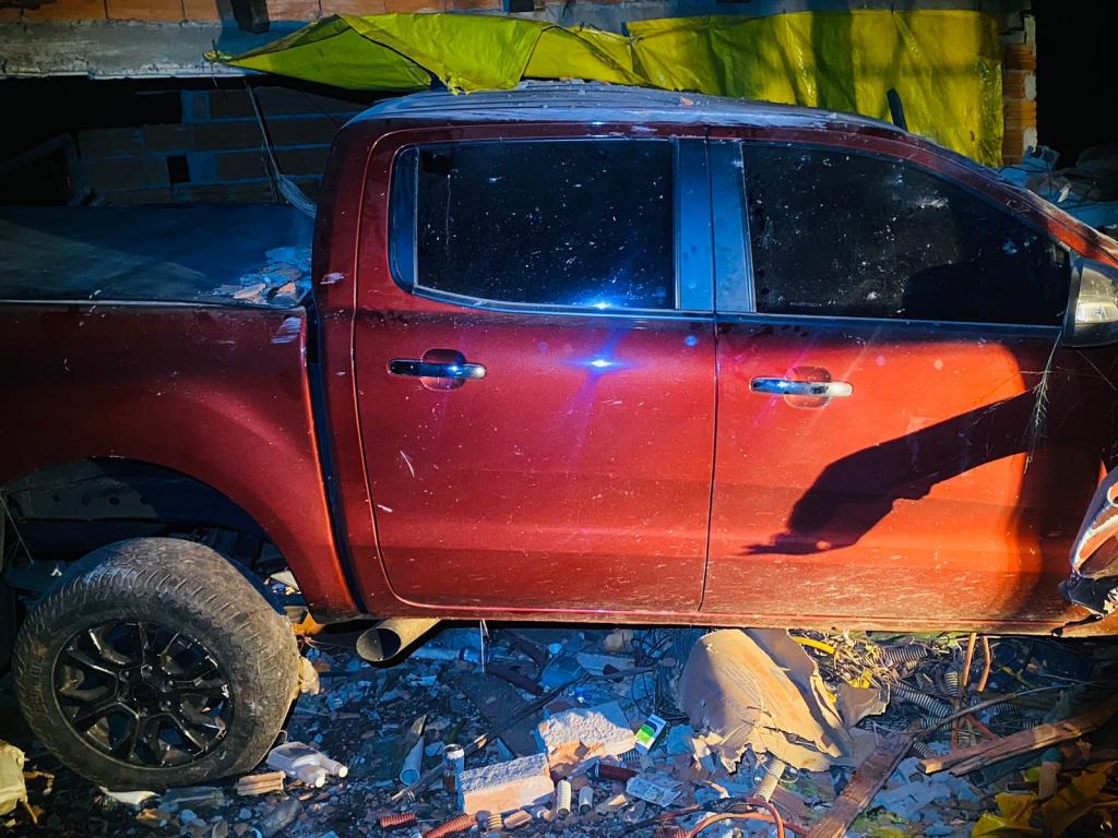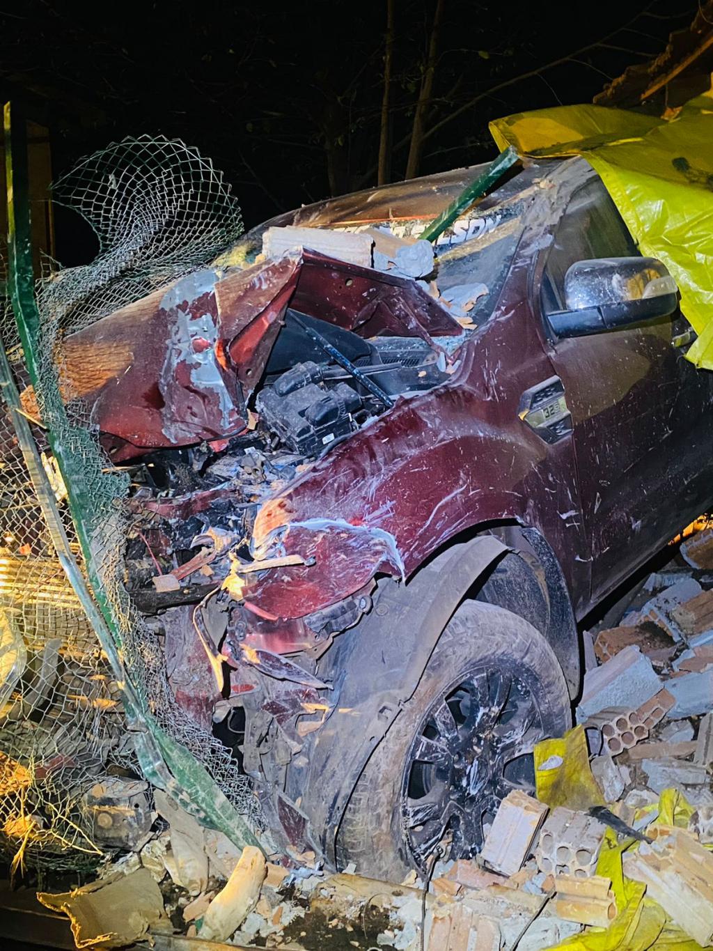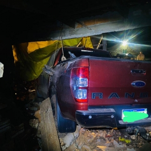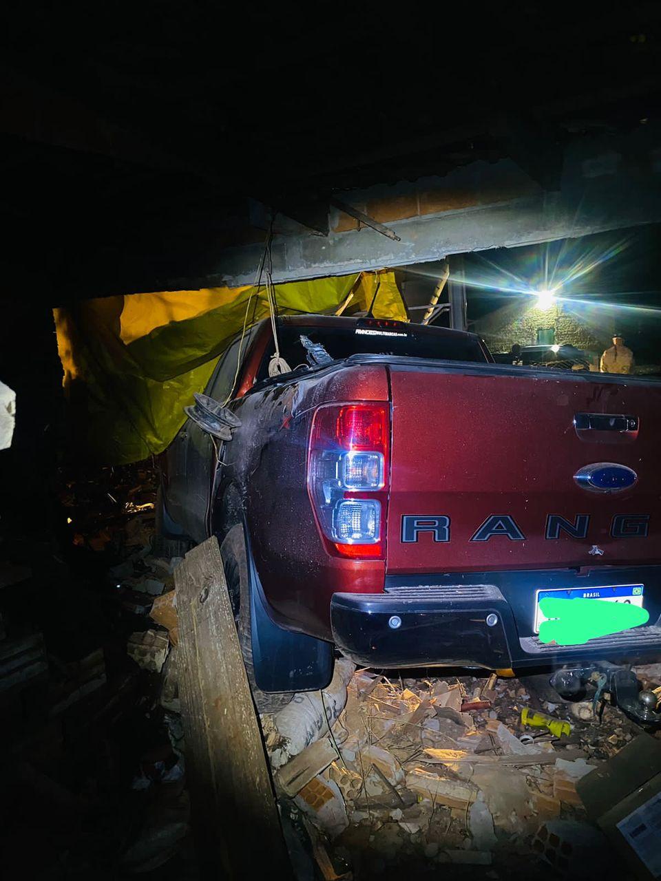 O veículo percorreu cerca de 230 metros antes de se chocar contra o imóvel. Como resultado, a parte frontal da Ford Ranger ficou completamente danificada.