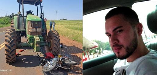 A colisão frontal entre um Trator John Deere e uma motocicleta Honda/CG 150-Titan aconteceu por volta das 7h30.