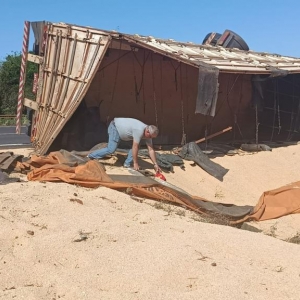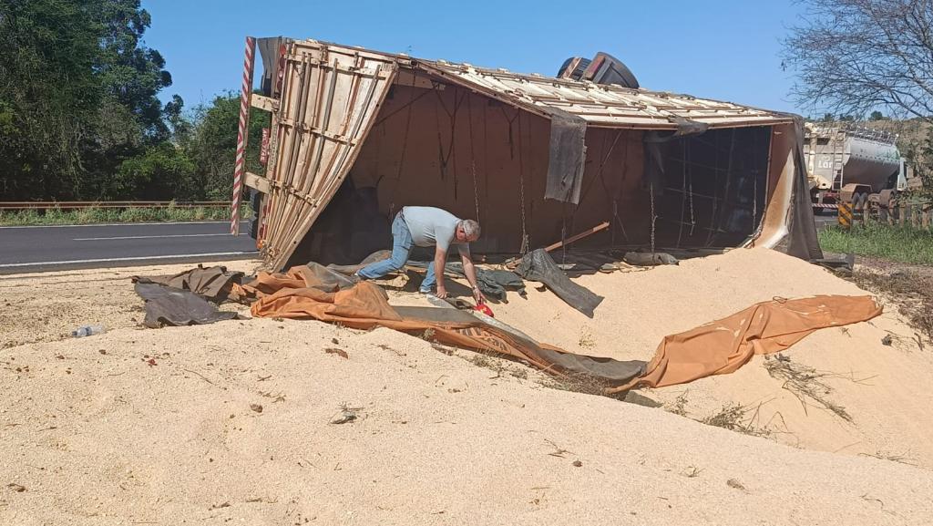 De acordo com informações obtidas no local, o condutor, de 63 anos, relatou que trafegava pelo trecho quando, a cerca de 600 metros da ponte sobre o Rio Lopeí, acabou sendo fechado por outro caminhão. Para evitar a colisão, ele desviou para o lado direito da pista, momento em que o segundo reboque da carreta perdeu o controle e tombou no acostamento.