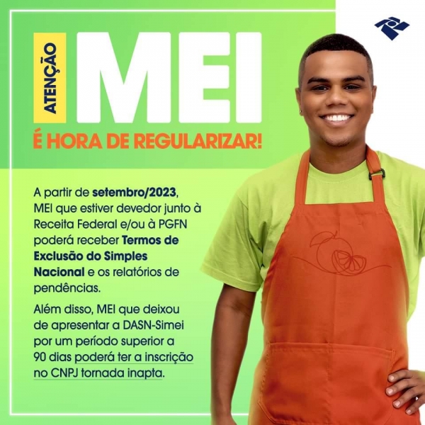 A Receita Federal do Brasil (RFB) alerta que os microempreendedores individuais (MEIS) com pendências junto ao órgão ou junto à Procuradoria-Geral da Fazenda Nacional (PGFN) receberão um termo de exclusão do Simples Nacional a partir de setembro deste ano.