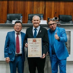 O reconhecimento que concede o título de “Cidadão Mogiano” foi oficializado em sessão ordinária que aprovou o Projeto de Decreto Legislativo n.º 270, de autoria do presidente da Câmara de Vereadores Francimário Vieira (Farofa) e do vereador Pedro Komura.