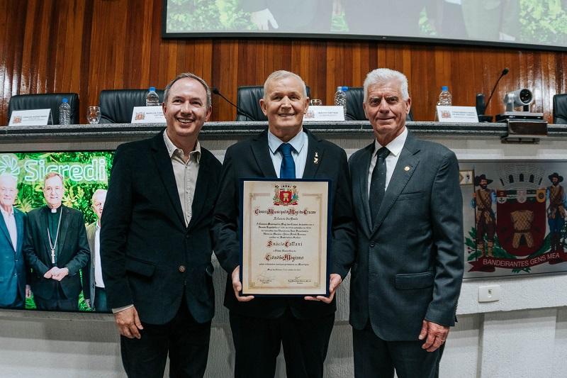 O presidente da Sicredi Progresso PR/SP, Inácio Cattani, foi homenageado nesta segunda-feira, 20, com o título de Cidadão Mogiano, em cerimônia realizada na Câmara Municipal de Mogi das Cruzes/SP.