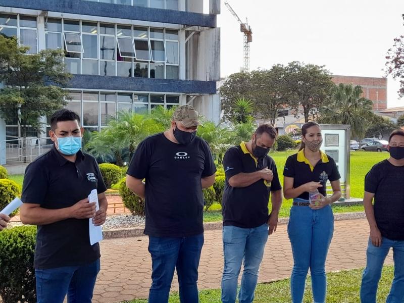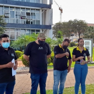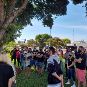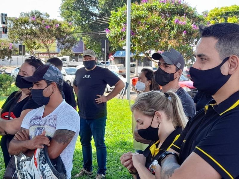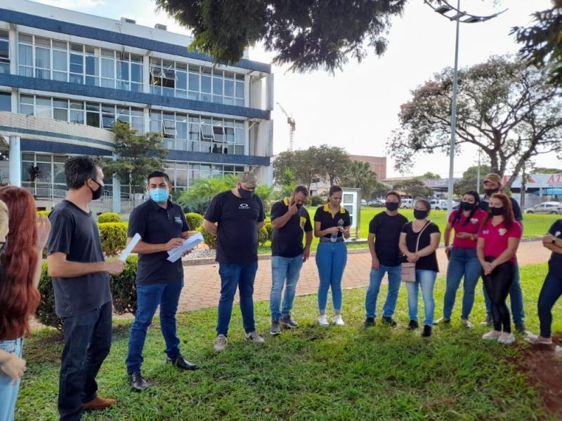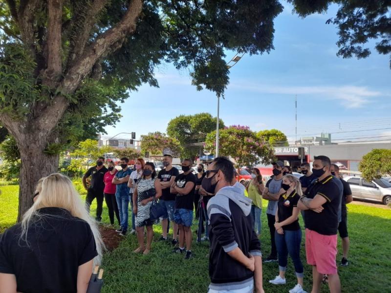 Os proprietários de bares, lanchonetes, restaurantes, lojas de conveniências e músicos se reuniram na manhã desta sexta-feira (19), em frente a Prefeitura de Toledo, para pedir pela extensão do horário de funcionamento de seus estabelecimentos até às 23h00.