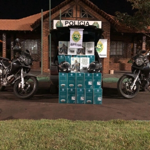 Já na madrugada de hoje (29) uma grande apreensão foi registrada pelo C.O.B.R.A. - Corpo de Operações de Busca e Repressão Aquática. Em patrulhamento embarcado no lago de Itaipu na cidade de Mercedes - PR, os policiais militares visualizaram uma embarcação com cerca de dez metros, popularmente conhecida como gala. O condutor da embarcação se aproximava da margem brasileira quando foi abordado. Foram encontradas diversas caixas de cigarros contrabandeados do país vizinho. Na margem brasileira, um veículo Master aguardava a chegada da embarcação, também com cigarros em seu interior. Nela foram encontrados também um rádio comunicador. No total foram apreendidos 150 caixas de cigarros nessa ocorrência. O condutor da embarcação foi encaminhado aos procedimentos juntamente com embarcação, veículo e contrabando apreendidos.