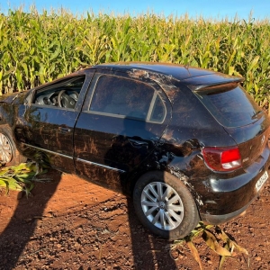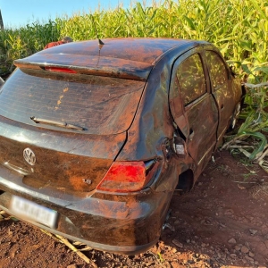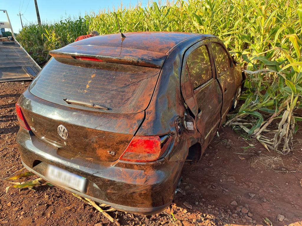 Um Gol com placas Mercosul capotou na manhã deste domingo na rodovia que liga Nova Santa Rosa a Novo Sarandi, na curva dos Lorenzatto, como é mais conhecido esse ponto.