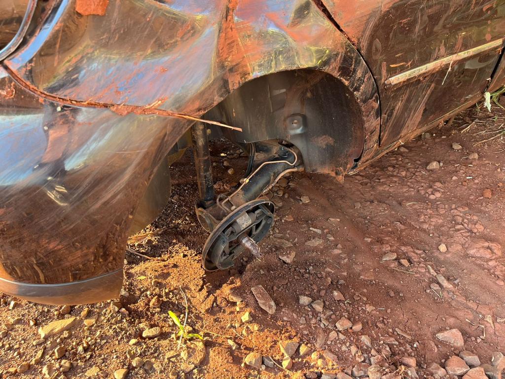Segundo o que informou o condutor que estava no local do acidente, a roda traseira direita caiu e o veículo capotou parando as margens da rodovia.