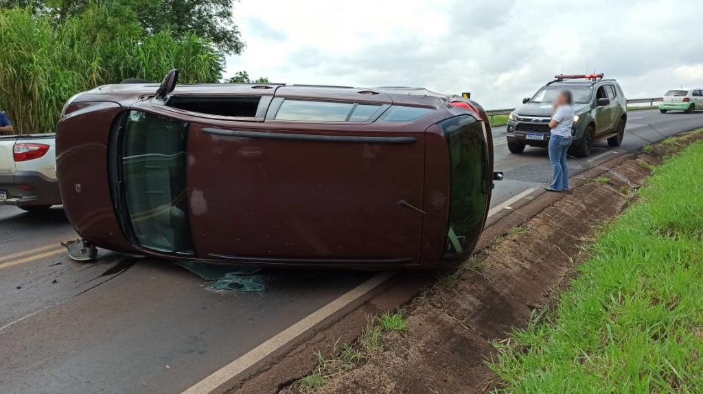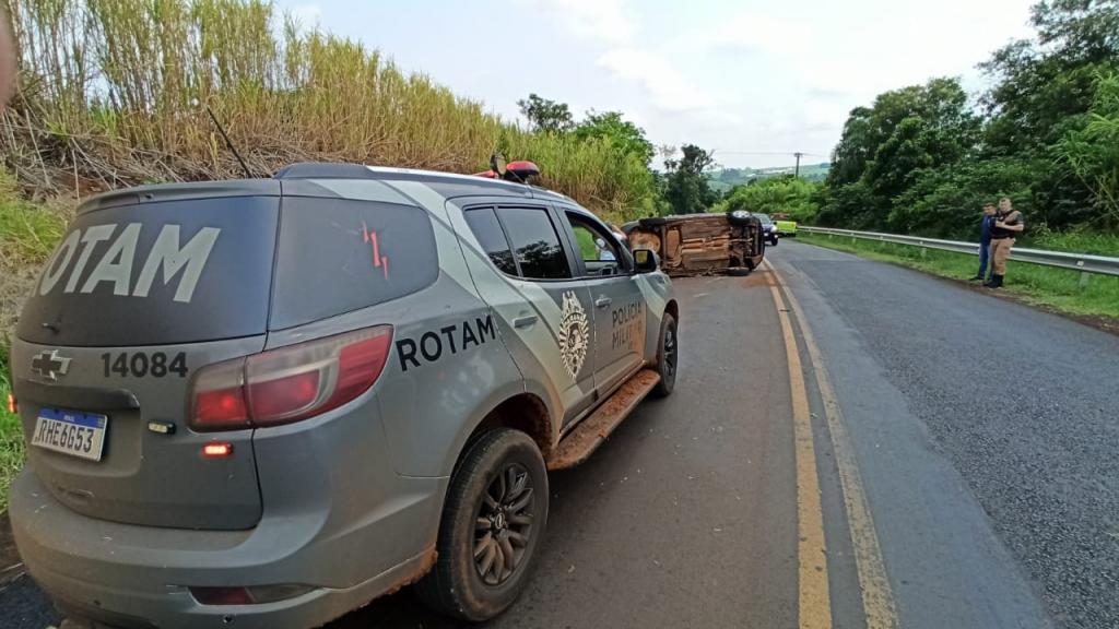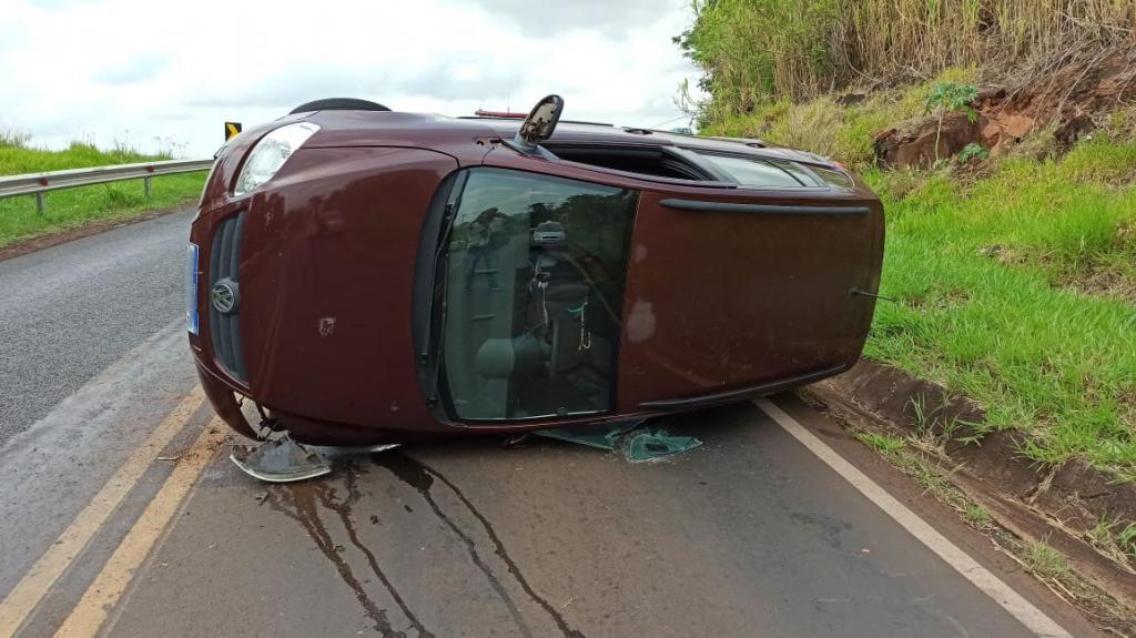 Neste momento, o veículo que era ocupado por um casal, acabou tombando. As vítimas envolvidas não se feriram, resultando do tombamento apenas danos materiais.