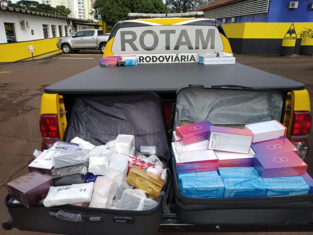 Na manhã desta segunda-feira (02), durante operação na PR 239 Km 604 a equipe ROTAM abordou um ônibus do transporte coletivo, com itinerário Toledo a Londrina, sendo que após revista no bagageiro forma localizados 03 malas contendo eletrônicos e aparelhos celulares.