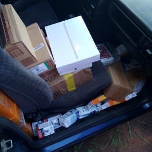 Durante busca nos veículos foi constatado que os carros estavam carregados de eletrônicos.