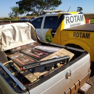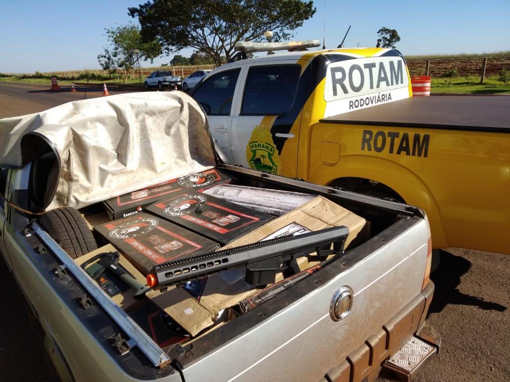 No local foi constatado se tratar de um Fiat/Strada de placas de Cascavel, carregada com armas (Fuzis e Pistolas) de Air Soft, acessórios e relógios contrabandeados do Paraguai. Diante dos fatos o veículo e as mercadorias foram encaminhados para a Delegacia da Receita Federal, em Guaíra para os procedimentos cabíveis. Veículo guinchado com apoio do BPFRON.