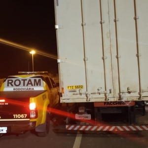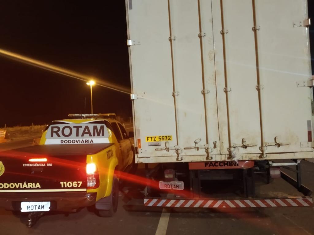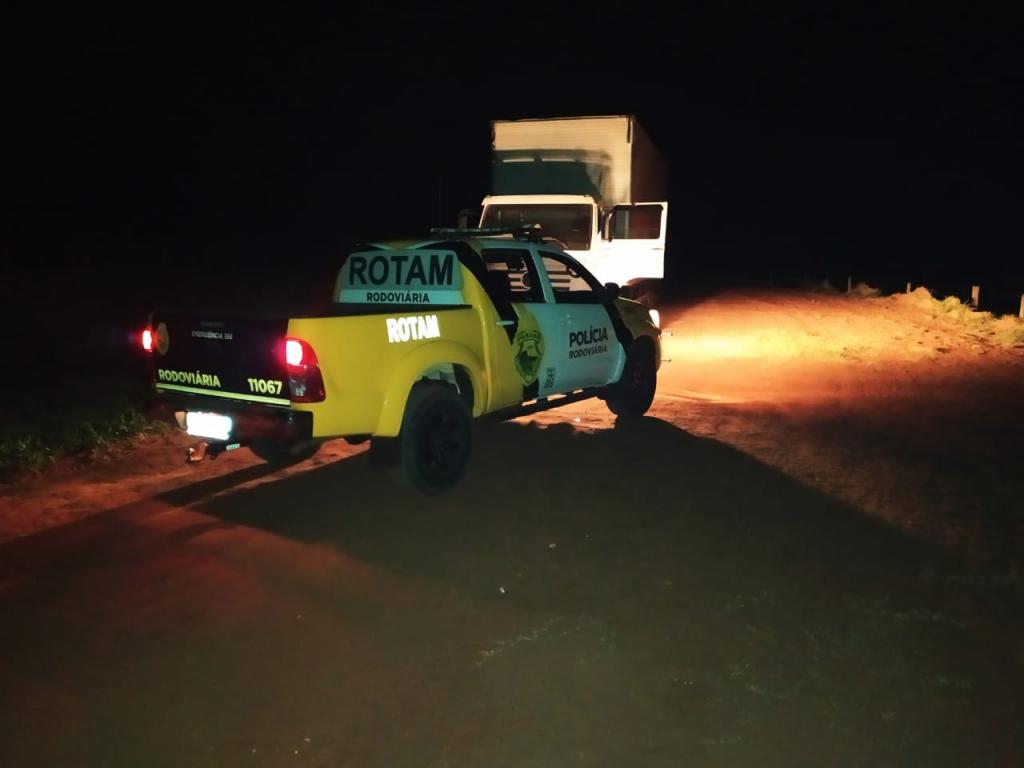 De imediato a equipe descolou ao encontro do veículo e ao acionar os sinais luminosos da viatura foi visualizado que o condutor do caminhão parou bruscamente e abandonou o veículo.