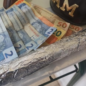 A equipe realizou a abordagem, sendo que com o condutor nada de ilícito foi encontrado. Durante busca veicular foi possível encontrar duas porções de maconha pronta para venda e dinheiro trocado, questionado o elemento sobre a origem da droga ele relatou que estaria fazendo a venda pois estava passando por dificuldades financeiras e que na sua residência estaria mais uma porção grande de maconha, uma porção de cocaína e mais duas armas de fogo.