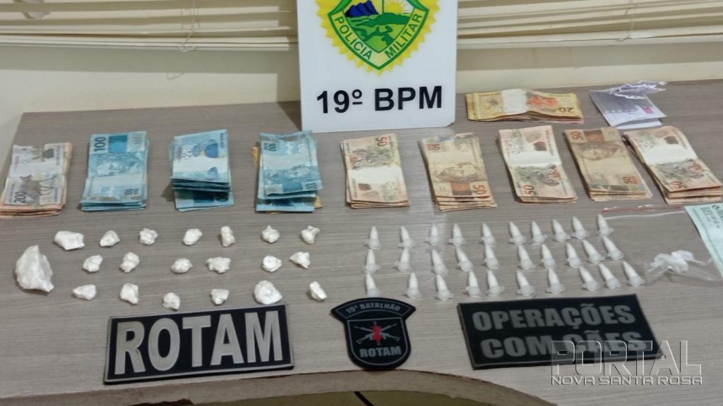 Também foi encontrado R$ 9.280 reais em espécie e um cheque no valor de 240,00 reais, e uma carteira contendo R$140,00, o morador relata ser da venda do entorpecente.