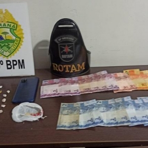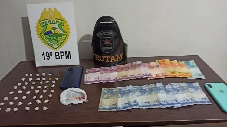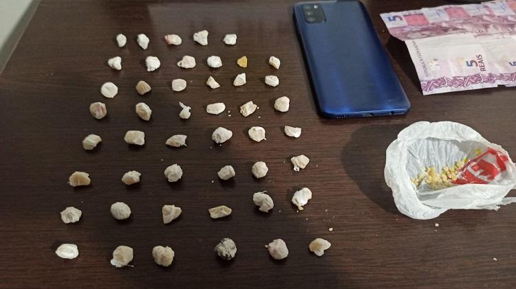No interior do imóvel, os agentes localizaram 47 pedras de crack prontas para venda, além de uma quantidade menor ainda não embalada, um aparelho celular e R$ 240 em dinheiro.