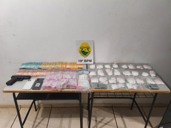Em revista pessoal, foram localizados R$ 470,00 em dinheiro, 27 invólucros de substância análoga à cocaína, totalizando aproximadamente 23 gramas, além de um telefone celular iPhone. No interior do veículo, os policiais encontraram ainda mais dois invólucros da mesma substância, com cerca de 2 gramas.