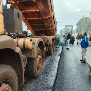 Os trabalhos contemplam a aplicação de uma camada asfáltica de 5 centímetros de espessura.