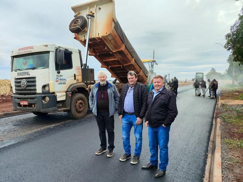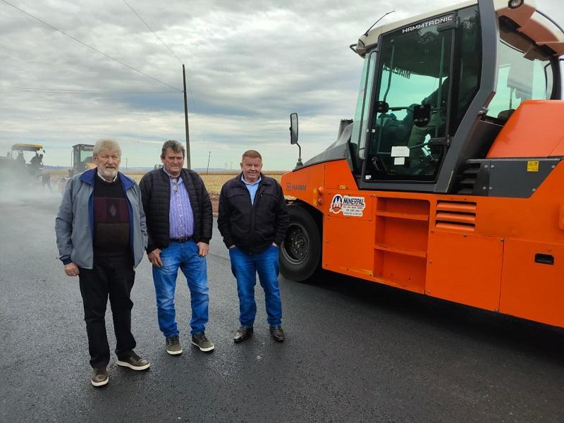 O tão sonhado asfalto está se tornando realidade para os moradores de algumas ruas do distrito de Planalto do Oeste. Na tarde desta terça-feira (01), o prefeito Lari Hitz, acompanhado pelo vice-prefeito Roque Lorenzatto e pelo secretário de Agricultura, Meio Ambiente e Infraestrutura, Max Benke, vistoriou o andamento das obras de pavimentação executadas pela empresa Minerpal.