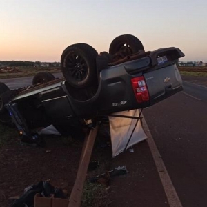 A Chevrolet S10 com placas Mercosul ocupada pelo motorista sua namorada e uma amiga do casal além de uma cachorra capotou no final da tarde de sexta-feira na rodovia BR 163, próximo ao viaduto com a avenida Parigot de Souza em Toledo.
