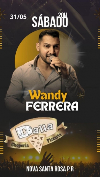 E para completar o sábado com muito mais animação, a partir das 20h00 tem show ao vivo com Wandy Ferrera, trazendo repertório vibrante para animar a noite.