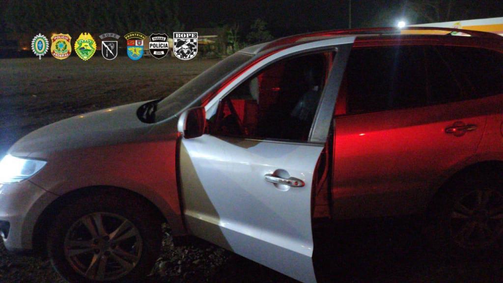 No local foram apreendidos uma Hyunday Santa Fé carregados com total aproximado 50 caixas de cigarros paraguaios, prejuízo de aproximadamente R$ 125.000,00 (cento e vinte cinco mil reais) ao crime organizado da região.