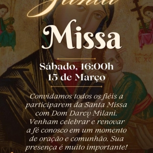 Todos estão convidados a participar desta Santa Missa cheia de bençãos com Dom Darcy Milani!