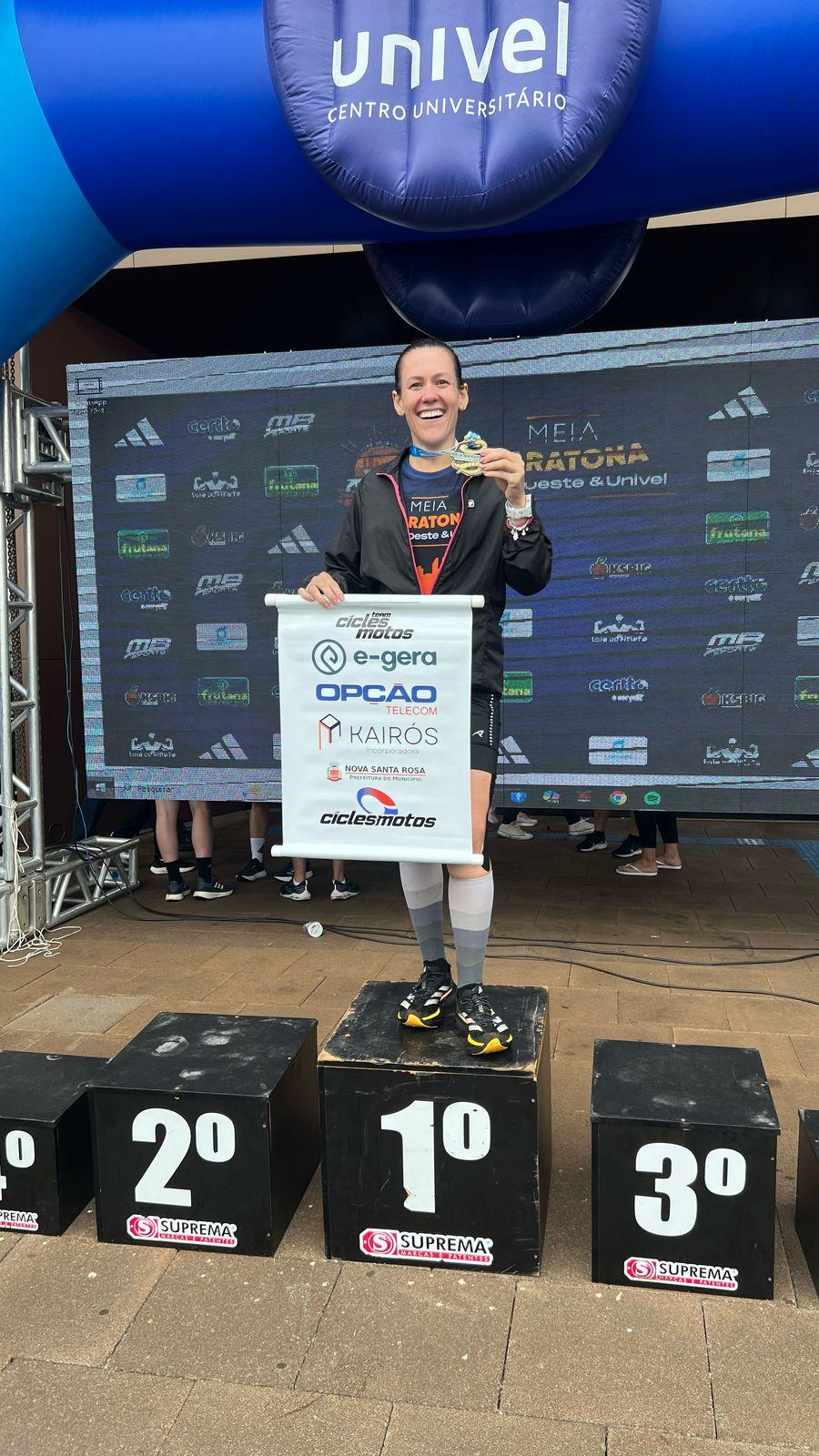 A atleta nova-santa-rosense Schaiane da Silva brilhou no último domingo (13) durante a Meia Maratona de Cascavel, uma das mais tradicionais provas de corrida de rua da região Oeste do Paraná. Enfrentando condições adversas, com chuva e clima instável, Schaiane superou os desafios do percurso de 21 km e conquistou o 1º lugar em sua categoria, além de garantir a 14ª colocação no ranking geral.