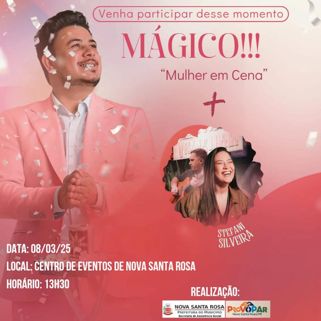 Em celebração ao Dia Internacional da Mulher, a Prefeitura de Nova Santa Rosa, por meio da Secretaria de Assistência Social, e o Provopar (Programa de Voluntariado Paranaense), convida todas as mulheres para uma tarde especial e cheia de atividades. O evento acontecerá no dia 08 de março de 2025, sábado, a partir das 13h30, no Centro de Eventos Joia do Oeste.