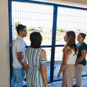 A visita foi liderada pela secretária de Educação, Vera Lúcia Lorenzatto, que esteve acompanhada da equipe de coordenação pedagógica da pasta e do engenheiro civil Matheus Calháu Botelho.