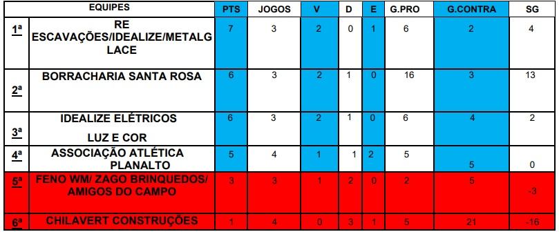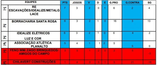 No primeiro confronto, a equipe da Borracharia Santa Rosa venceu por 3 a 0 a Feno WM / Zago Brinquedos / Amigos do Campo. Já na segunda partida, Associação Atlética Planalto e Chilavert Construções ficaram no empate em 2 a 2.