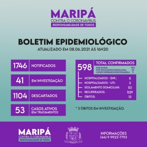 A Secretaria Municipal de Saúde de Maripá recebeu nesta terça-feira (8) a confirmação de três óbitos em decorrência da Covid-19. Os casos aguardavam confirmação da Secretaria de Estado da Saúde. Conforme boletim diário publicado na tarde desta terça-feira (8), o município possui, além destes, mais três óbitos sendo investigados.