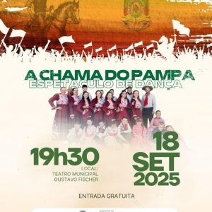 Já na quinta-feira (18), também às 19h30, o público poderá prestigiar o espetáculo de dança “Chama do Pampa”, apresentado pelo CTG Tertúlia do Paraná, no Teatro Municipal, também com entrada gratuita.