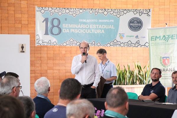 A primeira palestra do seminário abordou o tema “Sistemas de Bioflocos para Aquicultura”, que foi apresentada pelo professor doutor da Universidade Federal do Paraná, Eduardo Luis Cupertino Ballester. O segundo tema tratou sobre o uso dos aeradores na qualidade da água para a piscicultura, assunto explanado pelo professor doutor do Instituto Federal do Paraná, Anderson Coldebella. O último tema abordou os principais desafios sanitários para a tilapicultura nacional: ontem, hoje e o amanhã. O assunto foi explanado pelo professor doutor da Universidade Federal de Minas Gerais, Carlos Leal.