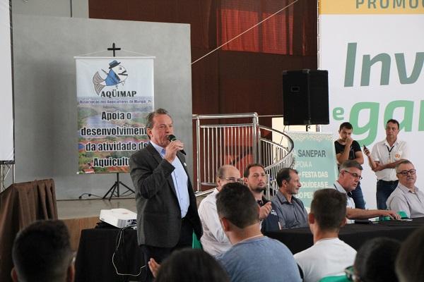 A Comissão Central Organizadora da 21ª Festa das Orquídeas e do Peixe, em parceria com a Administração Municipal, Associação dos Aquicultores de Maripá (Aquimap), Emater e C.Vale, realizaram nesta sexta-feira (23) o 18º Seminário Estadual da Piscicultura. O evento reuniu 540 pessoas ligadas ao setor, entre eles técnicos, estudantes, pesquisadores e produtores. A primeira etapa do evento ocorreu no Salão de Festas da Comunidade Católica com três palestras e segue com almoço à base de peixe no Centro de Eventos e visitação à Feira da Aquicultura, espaço que reúne mais de 20 empresas ligadas ao setor.