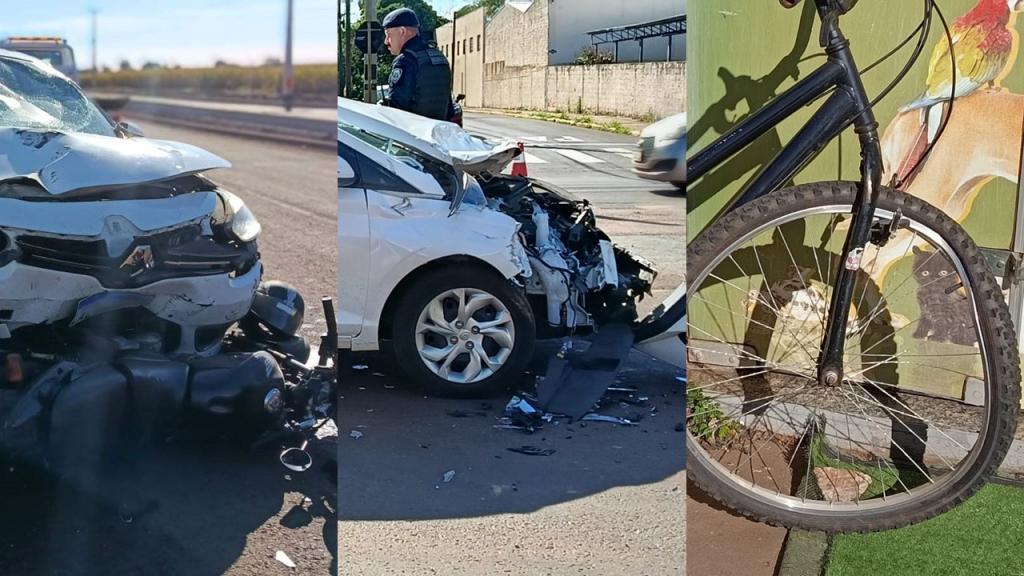 O terceiro acidente foi em uma rotatória no Jardim Bressan e envolveu um Ford Ka e uma bicicleta conduzida por uma adolescente de 15 anos. Ela seguia pela contramão na Avenida Senador Atílio Fontana quando atingiu a lateral do carro. A jovem teve ferimentos moderados e foi levada à UPA.