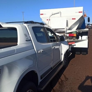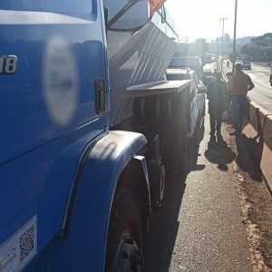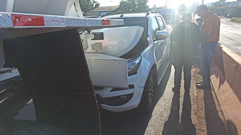 O trânsito ficou carregado na manhã desta quinta-feira (8) em Toledo, após um engavetamento envolvendo três veículos na entrada do viaduto da avenida Parigot de Souza com a rodovia PR-182, nas proximidades do bairro Jardim Anápolis. A colisão em sequência envolveu um caminhão de transporte de ração, uma caminhonete Chevrolet S10 e uma van Fiat Ducato — todos com placas do Mercosul.