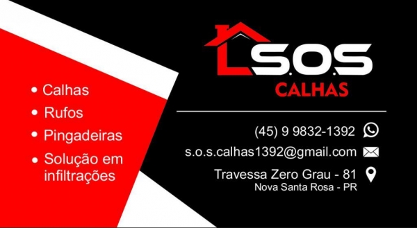 S.O.S Calhas, Travessa Zero Grau nº 81, fone/Whats (45) 9 9832-1392.