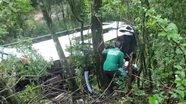 Dos sete feridos, quatro estão em estado grave. As informações apuradas são de que os veículos bateram, saíram da pista e caíram em uma ribanceira. O ônibus pertence a empresa Viação Catarinense.