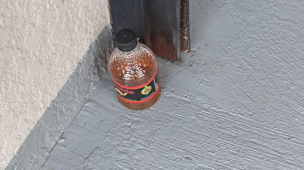Dentro do Ford Ka foi encontrado um corote com cachaça.