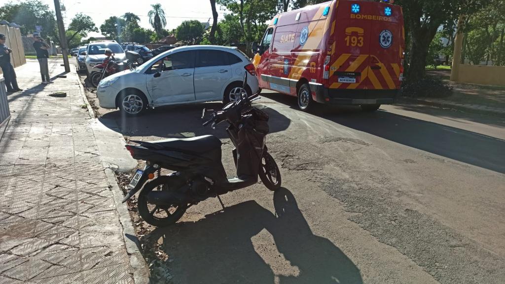 Na manhã de hoje um carro da marca Citroen trafegava pela rua 25 de julho e uma moto Yamaha modelo Neo seguia atrás no bairro Rossoni em Toledo.