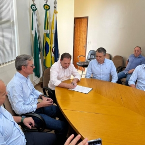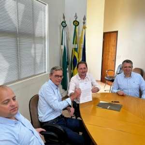 Foi assinado o protocolo de intensão entre as autoridades para a instalação das dependências da agência de número dez do Sicoob que deve ser inaugurada em dezembro deste ano.