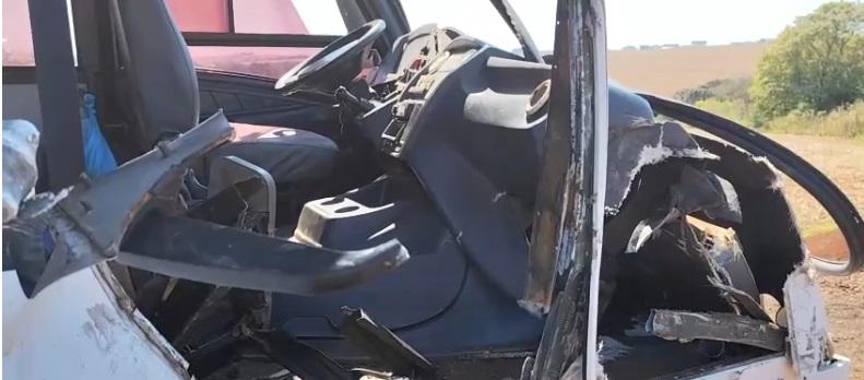Segundo informações, o motorista tentou desviar o veículo para a esquerda, mas, devido à aproximação de um carro no sentido contrário, precisou retornar para a pista. Nesse momento, o coletivo bateu fortemente contra um caminhão.