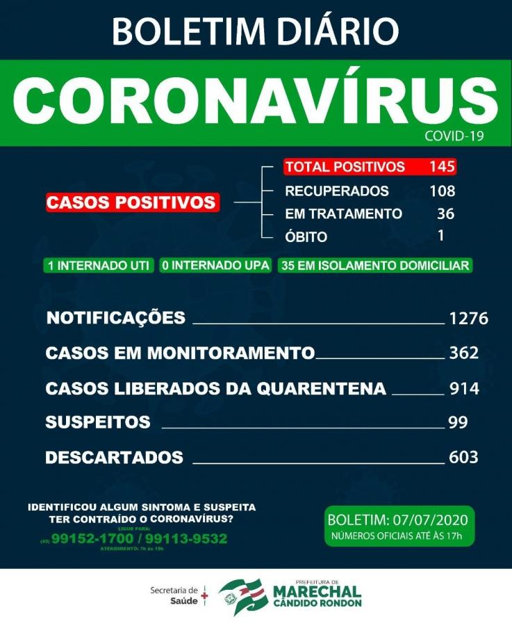 A Prefeitura de Marechal Cândido Rondon divulgou um novo boletim com os casos de Covid-19 no município rondonense.