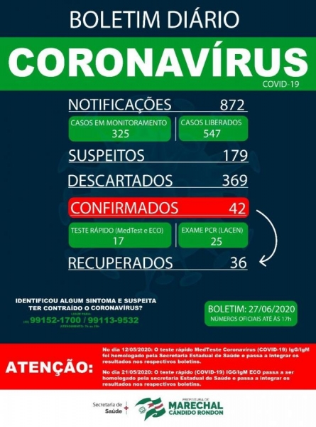 Um novo boletim com os números atualizados de casos de Covid-19 em Marechal Cândido Rondon foi divulgado neste sábado (27) pela prefeitura municipal.